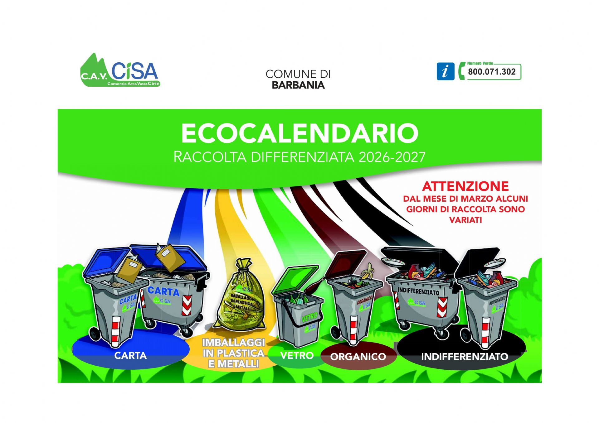 Si pubblica nuovo calendario raccolta rifiuti differenziata 2026/2027.